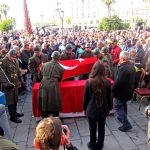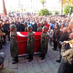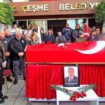Çeşme’de 20 yıl belediye başkanlığı yapan Ahmet Faik Tütüncüoğlu (88), 20 Aralık’ta yaşamını yitirdi. Tütüncüoğlu’nun Türk bayrağına sarılı naaşı askeri törenin yapılacağı Çeşme Belediyesi önüne getirildi.