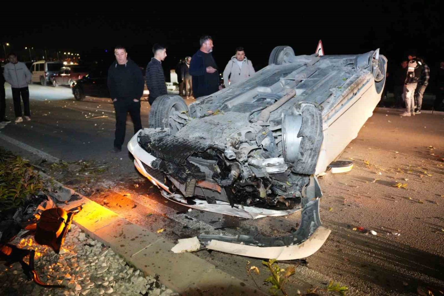 Bölgeye gelen sağlık ekipleri sürücü M.A.’ya olay yerindeki müdahalelerin ardından ambulans ile en yakın hastaneye sevk etti. Kaza sonucunda lüks otomobil hurdaya döndü.