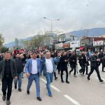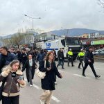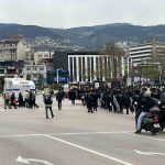 Eylem sırasında toplanan grup sık sık “Bursa’nın başkanı Mustafa Bozbey” sloganları atarak destek gösterisinde bulundu.