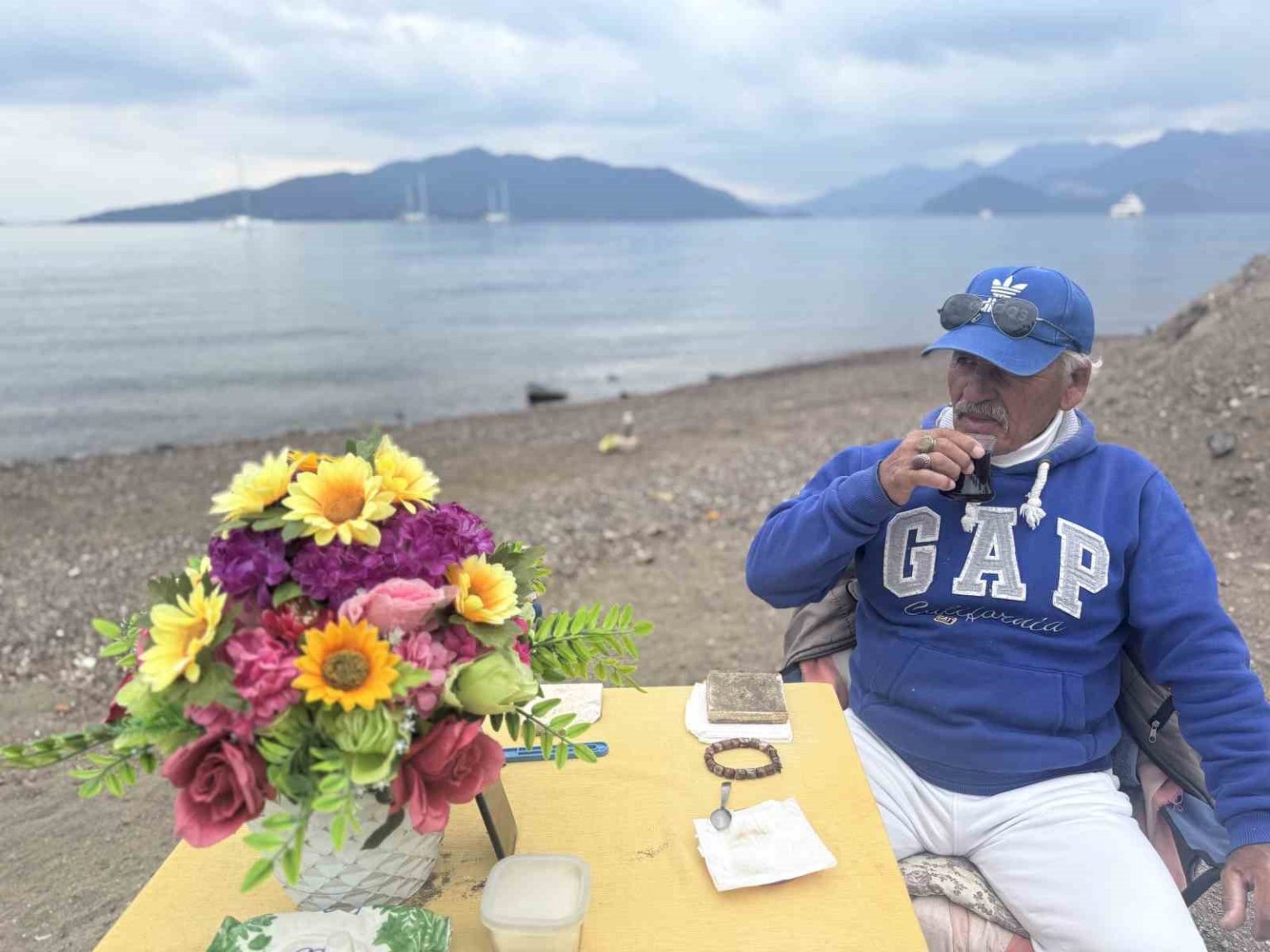 Emekli olduktan sonra hayatını sadeleştirdiğini anlatan Parlak, “Grafik tasarımcıyım, 35 sene reklamcılık ve grafik tasarım yaptım. Daha sonra peyzaj ve bahçe işleriyle uğraştım, sonra emekli oldum. 72 yaşındayım, şimdi hayatımı yaşıyorum. 20 yıldır Marmaris’teyim. Yaz kış burada masamda hep çiçek olur. Şu an oturduğum yer kışlık alanım, yazın ise yaklaşık 50 metre ileride oturuyorum. Çok ilgi çekiyor, çevreye pozitif bir enerji veriyor. Ben huzuru masamda buldum, mutluyum. Ticaret, para, hesap hepsini kapattım. Bugün bana günde 100 bin TL verseler yine çalışmam. Yıllarca çalıştım, o işi kapattım. Şimdi gençler çalışacak, iş onların hakkı. Biz belli bir yaştan sonra geri çekilmek zorundayız” şeklinde konuştu.