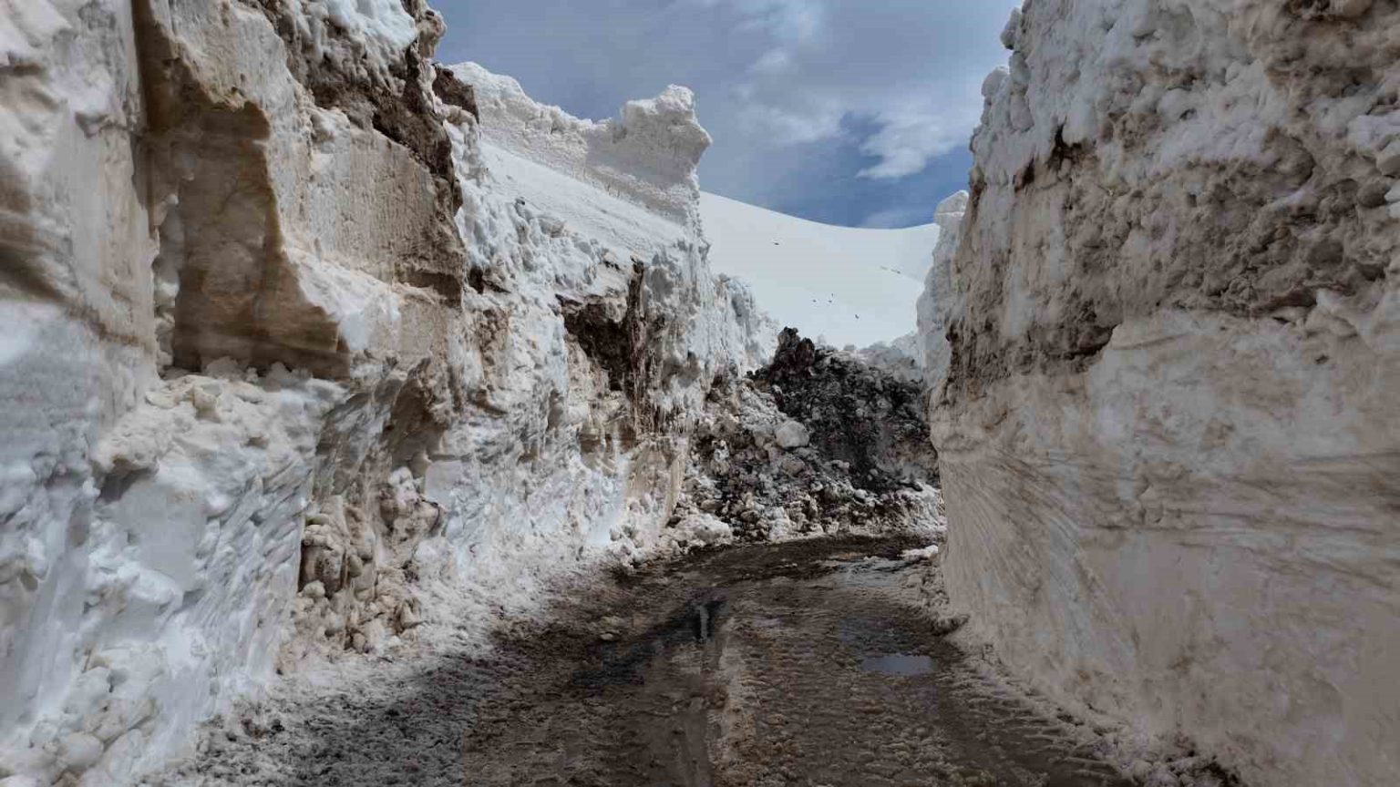 Çığ düşmesi sonucu günlerdir kapalı olan belde yolunu açmak için ekipler seferber oldu. Kar kalınlığı 11 metreyi bulunca ekipler gece gündüz çalışarak yolu bayramda ulaşıma açmayı hedefliyor.