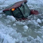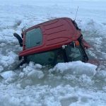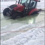 Ardahan’ın Çıldır ilçesindeki yüzeyi buz tutan Çıldır Gölü üzerinde kar temizleme çalışması yapan traktör, buzun kırılması sonucu suya gömüldü, sürücü son anda kurtarıldı.