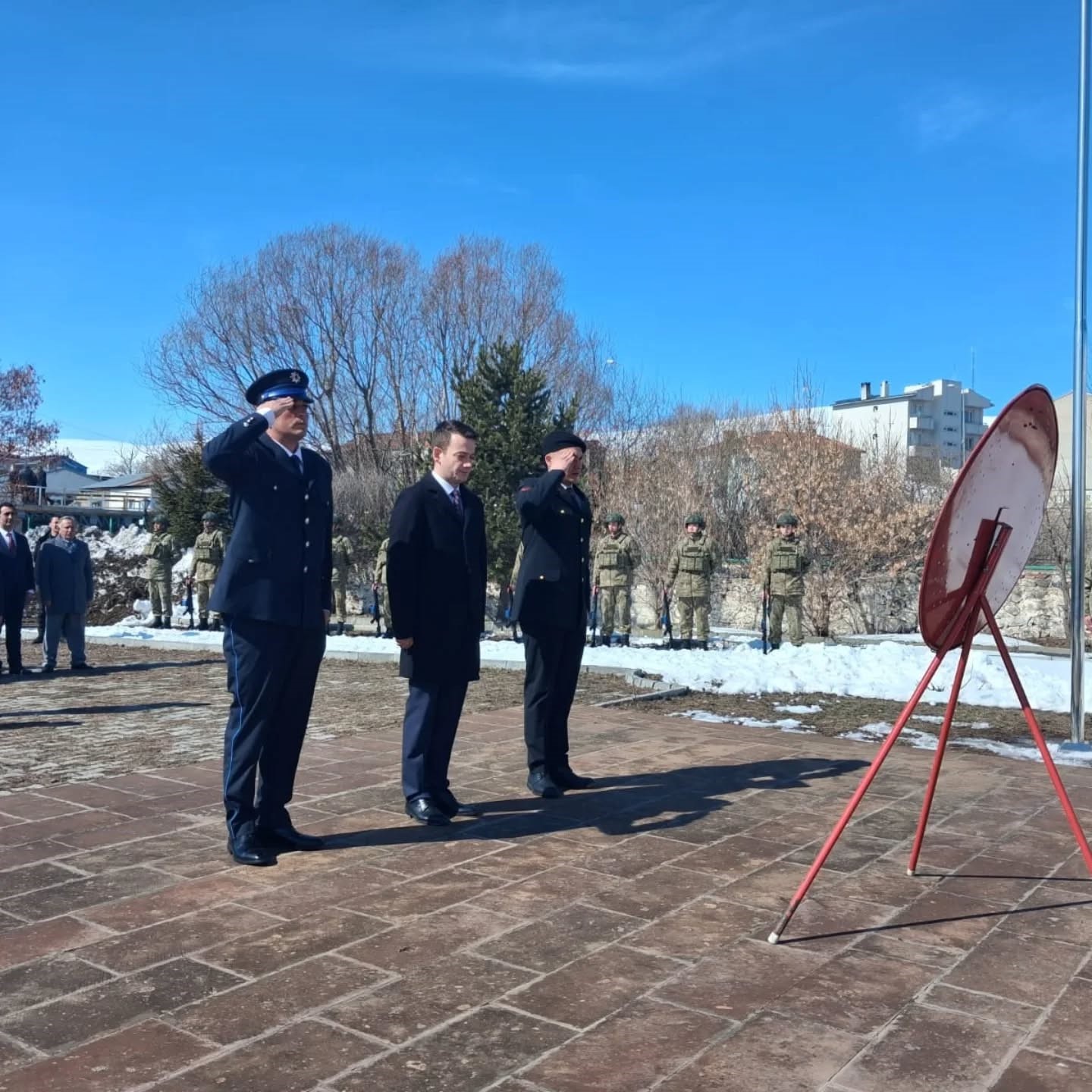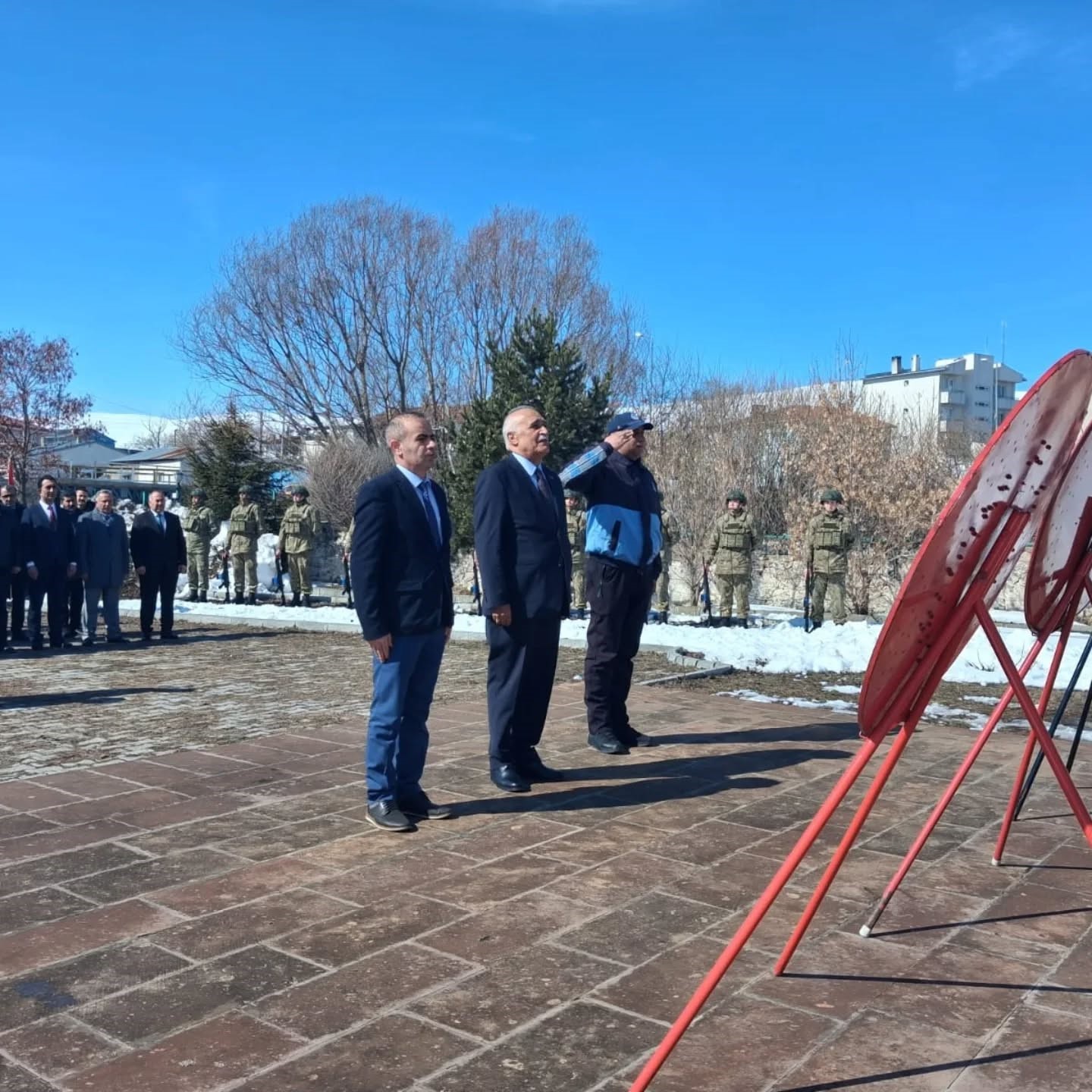 Çıldır 93 Harbi Şehitlik Anıtı önünde düzenlenen tören, aziz şehitlerimizin anısına çelenk sunumuyla başladı. Çıldır Kaymakamı Barış Aytürk, Garnizon Komutanı Piyade Binbaşı Mesut Günfer ve Belediye Başkanı Kemal Yakup Azizoğlu tarafından anıta çelenkler sunuldu. Tören, Çıldır Müftüsü Metin Aksoy’un şehitlerimizin ruhu için okuduğu dualar eşliğinde sona erdi.