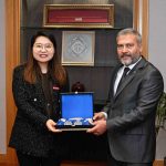Türkiye-Çin diplomatik ilişkilerinin 55’inci yılı kutlamaları kapsamında düzenlenen “Diyalog-Bütünleşme” başlıklı sergi çerçevesinde, Çin Büyükelçiliği, Changzhou Teknoloji Enstitüsü (CIT) ve Anadolu Üniversitesi sanatçılarının yer aldığı ortak sergiye katkı sunan Çinli heyet, Anadolu Üniversitesi Rektörü Prof. Dr. Yusuf Adıgüzel’i makamında ziyaret etti.