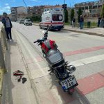 Karaman’da cipe arkadan çarpan motosikletin sürücüsü refüje düşerek yaralandı.