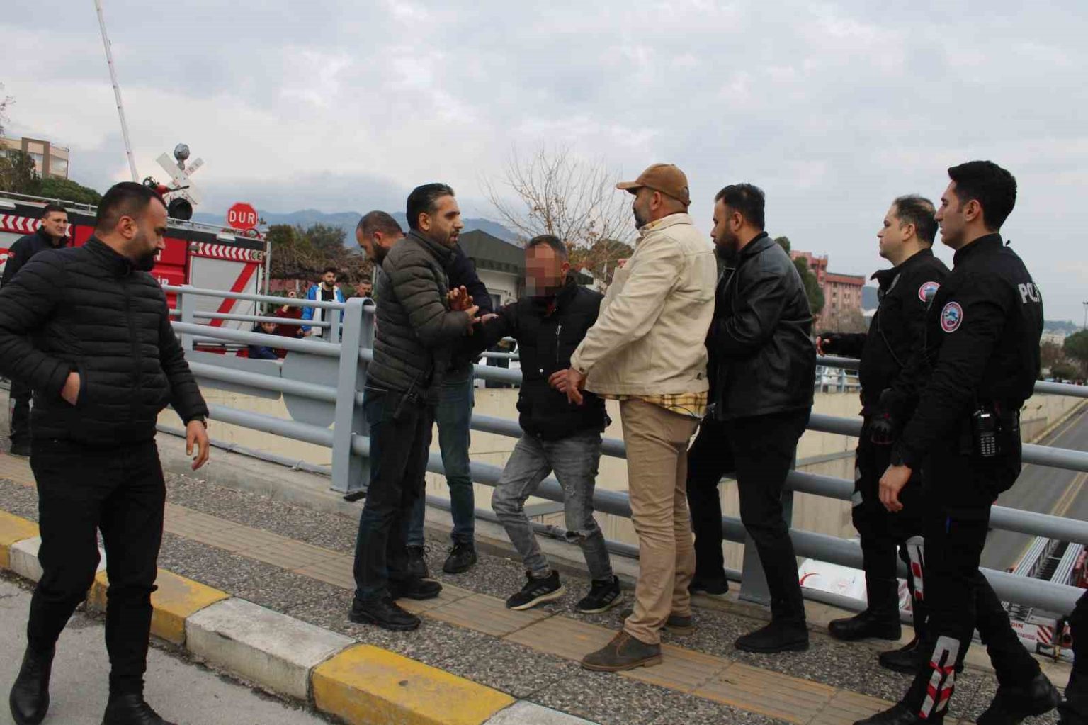 Çocuğunu görmek için alt geçidin üstüne çıkan şahıs ikna edildi