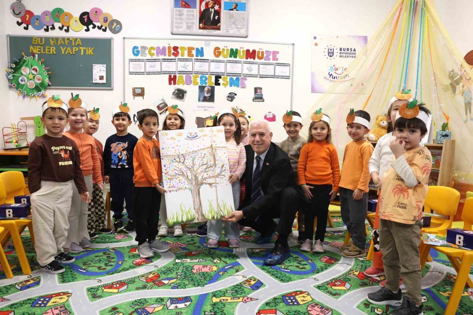 Bir yandan Bursa’yı dirençli ve afetlere hazırlıklı hale getirmek için projeler üreten Bursa Büyükşehir Belediyesi bir yandan da toplumsal farkındalığı artıracak çalışmalarını sürdürüyor. Bu kapsamda Alacahırka ve Üçevler Bursa Yuvam Çocuk Etkinlik Merkezlerini ziyaret eden Bursa Büyükşehir Belediye Başkanı Mustafa Bozbey, öğrencilerle bir araya geldi. Çocuklara afet bilincini artırmaya yönelik hazırlanan boyama kitapları hediye eden Başkan Bozbey, minik öğrencilerle birlikte boyama da yaptı. Öğrencilere süt ve meyve de ikram eden Başkan Bozbey, afetler hakkında bilgiler verdi.