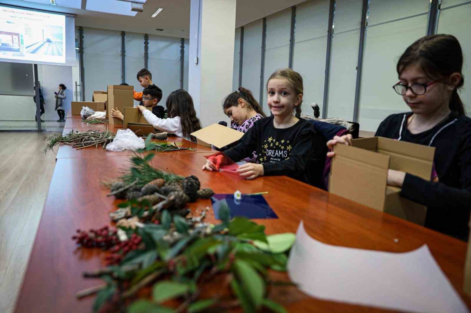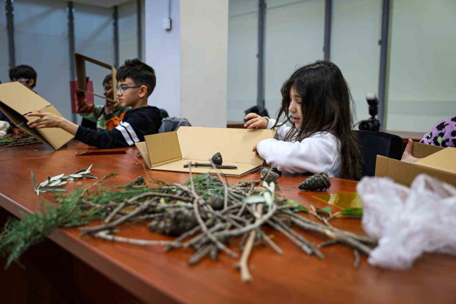 Kendi özgün maketlerini üreten çocuklar, ağaç kabukları, dallar, kozalaklar, yapraklar ve çakıl taşları gibi doğal malzemeleri kullanarak üretimlerini zenginleştirdi. Ayrıca seçtikleri mini figürlerle tasarladıkları mekânların hikâyelerini de anlattılar.