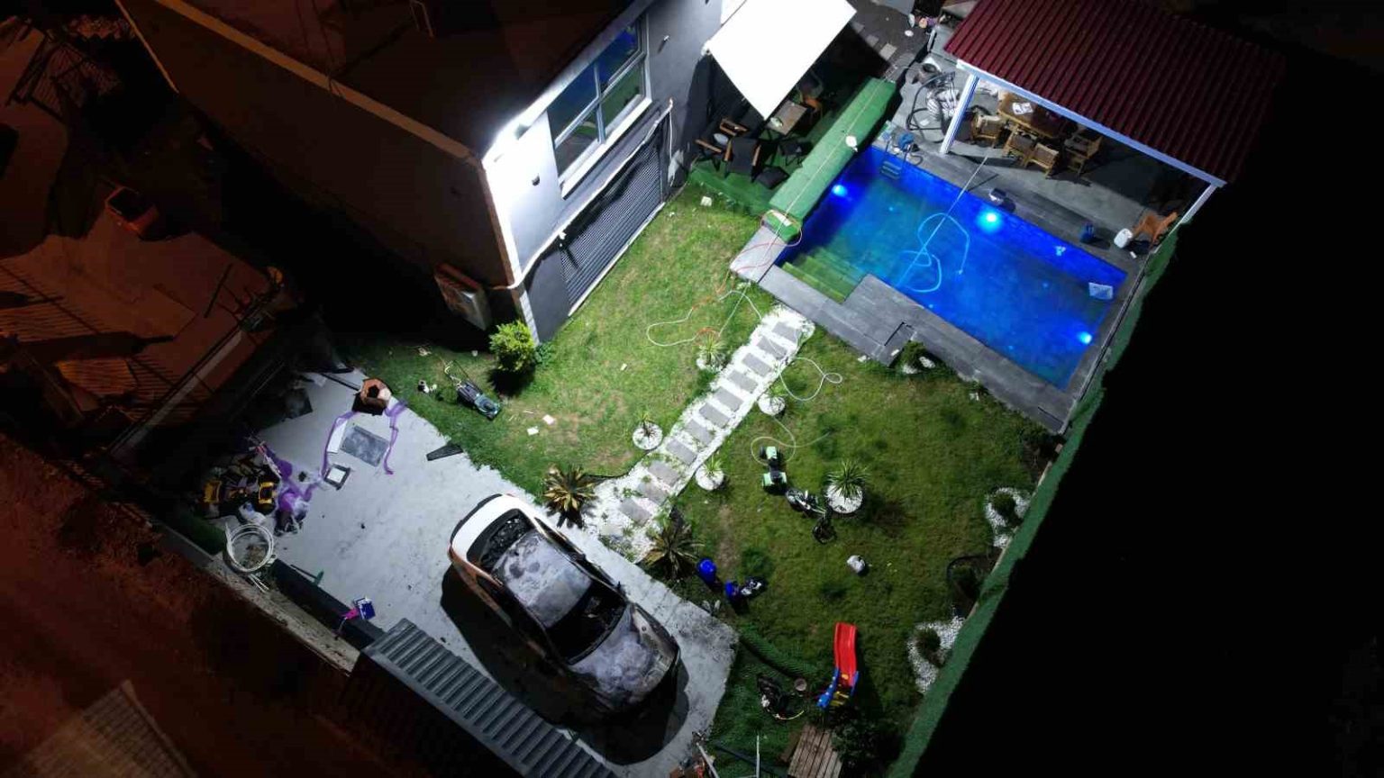 Olay, dün akşam saatlerinde merkez Sarıçam ilçesi Boynuyoğun Mahallesi’ndeki bir villada meydana geldi. İddiaya göre, bir süre önce G.A., eşi Sergen A. (34) ile tartışmaları üzerine evi terk etti. Karısı eve gelmeyince cinnet getiren koca, tabancayla çocukları Ada (8) ve Mert’i (6) vurduktan sonra aynı tabancayla kendini vurdu. Silah seslerini duyan vatandaşların ihbarı üzerine adreseçok sayıda polis ve sağlık ekibi sevk edildi. Bölgeye gelen sağlık ekipleri, baba ve çocukların hayatını kaybettiğini tespit etti. G.A. ile aile yakınları da acı haberi alınca olay yerine geldi. Olay yerine gelen yakınları, Sergen A.’nın otomobilini kundakladı. Bölgede yapılan incelemelerin ardından baba ve çocukların cenazeleri, otopsi yapılmak üzere Adana Adli Tıp Kurumu morguna kaldırıldı.
