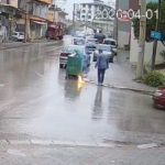 Öte yandan yaşanan o anlar, çevrede bulunan bir iş yerinin güvenlik kamerasına anbean yansıdı. Görüntülerde, Yücel’in bataryayı çöpe atmak için ilerlediği sırada bataryanın patlayarak alev aldığı, ardından yere atarak söndürmeye çalıştığı anlar yer aldı.