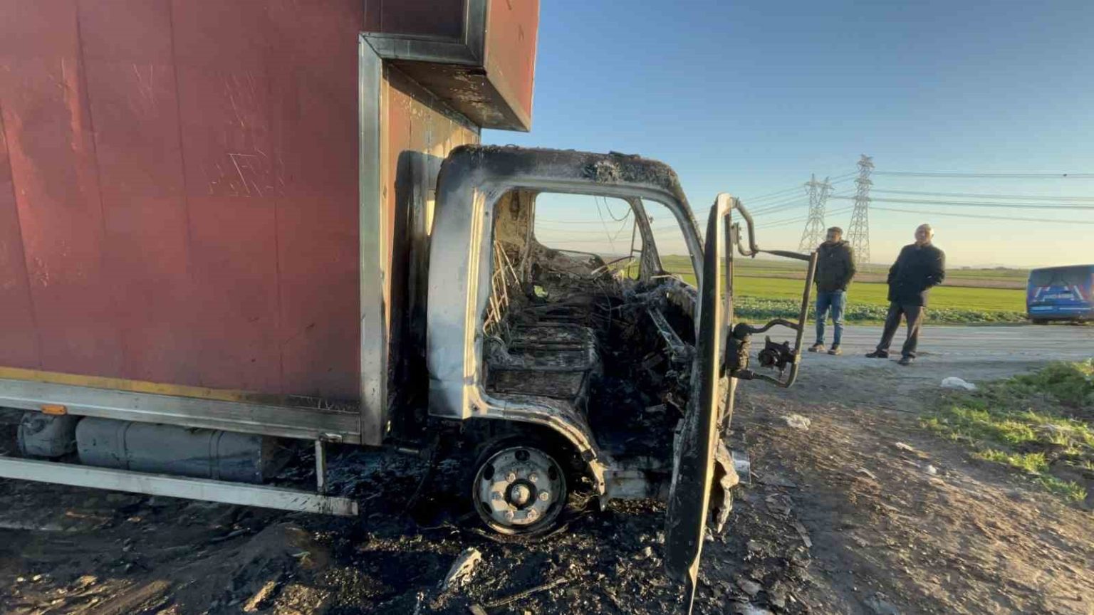 Yangın sonrası kamyonetin kabini demir yığınına döndü. Çorlu Jandarma ekiplerinin olay yerinden yaptığı kontrollerin ardından, hurdaya dönen kamyonet çekici vasıtasıyla kaldırıldı.