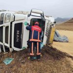 Çorum’da devrilen tırın sürücüsü yaralandı