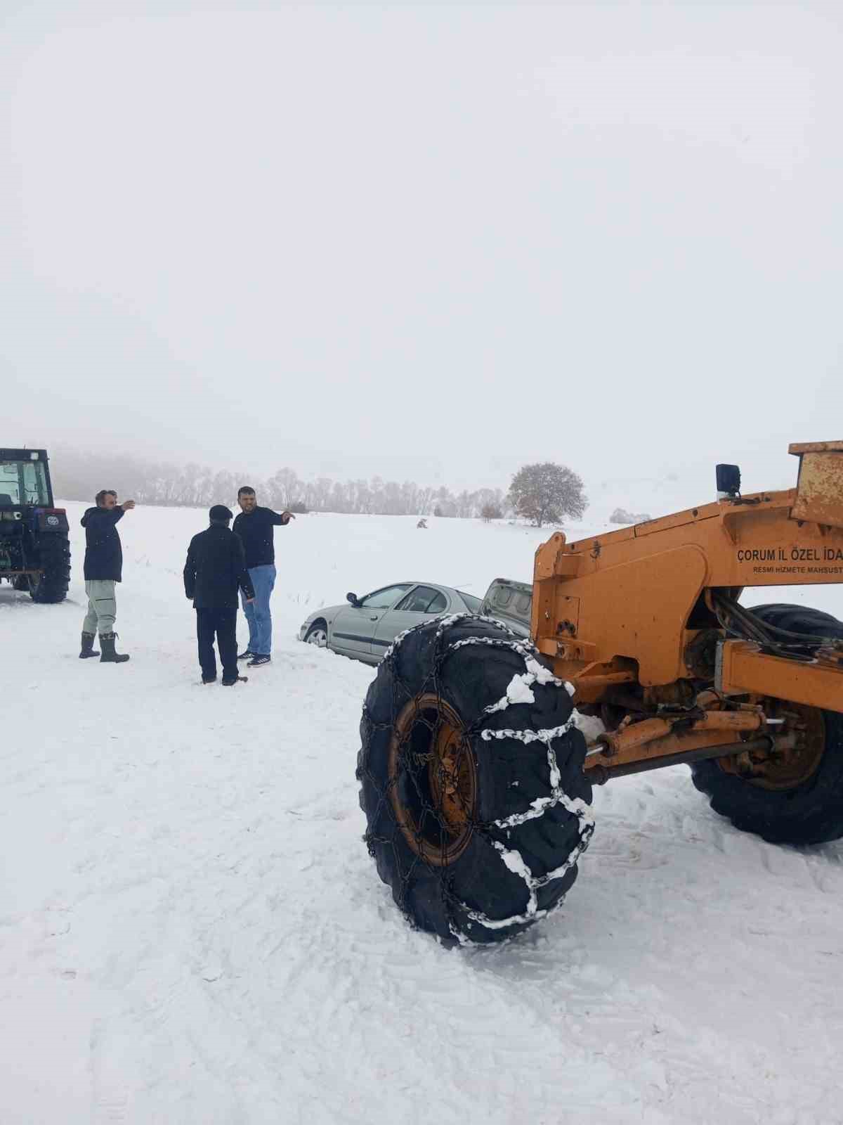Çorum’da mahsur kalan araçlar için ekipler seferber oldu