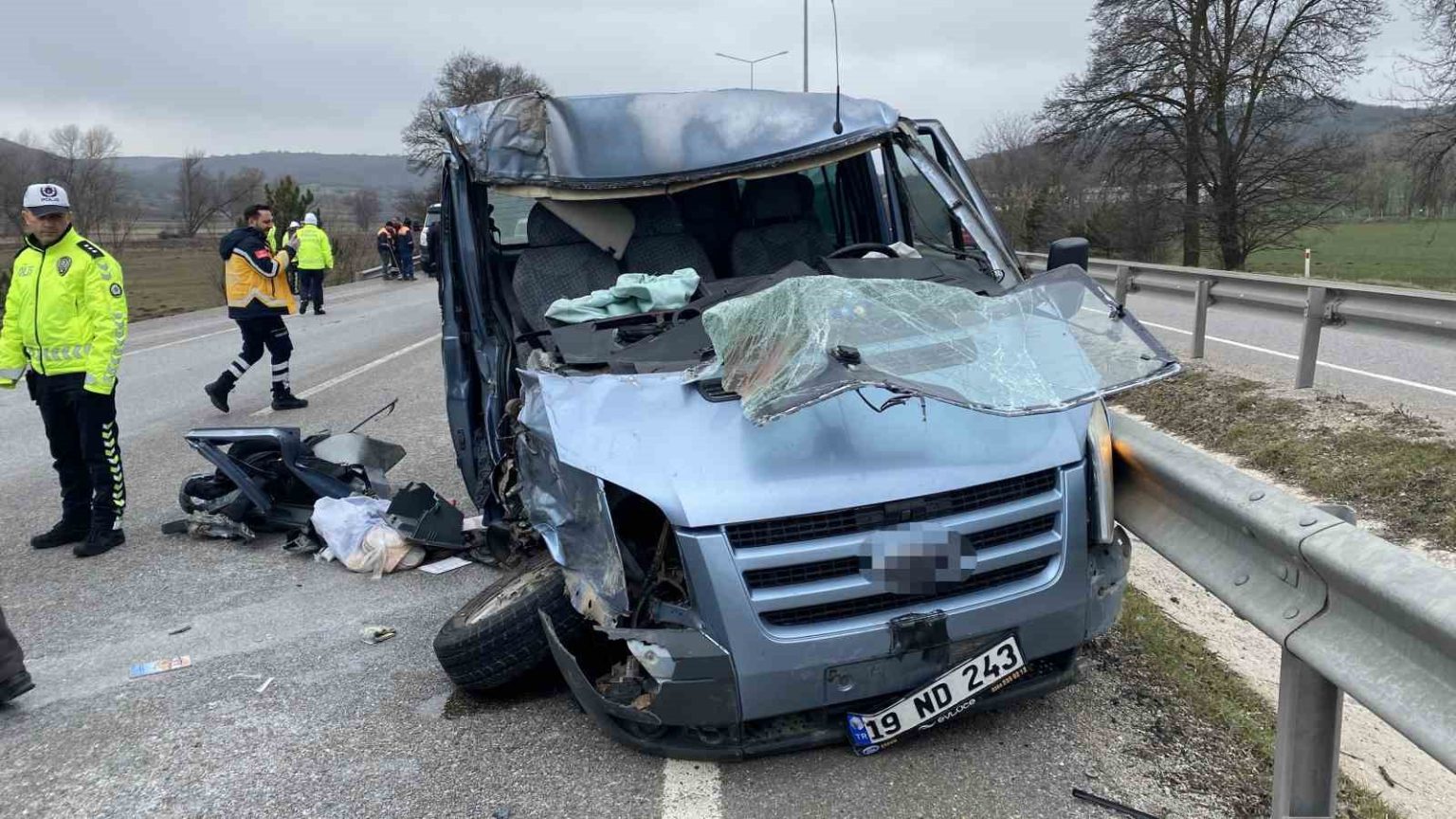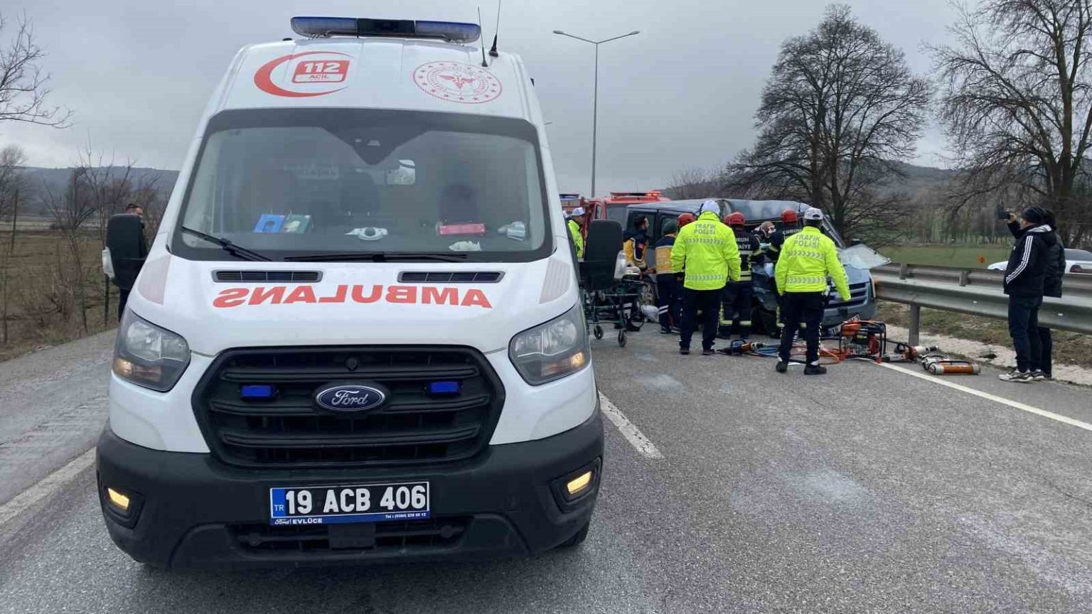 Çorum’da minibüs tıra çarptı: Sürücü araçta sıkıştı, eşi ve kızı yola savruldu