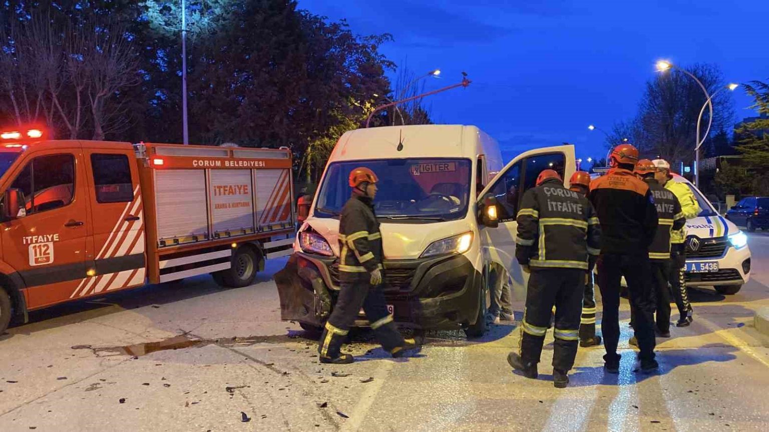 Kaza, Gazi Caddesi Hitit Üniversitesi Sağlık Bilimleri Fakültesi önündeki kavşakta meydana geldi. Edinilen bilgiye göre, B.Y. idaresindeki 06 EIG 149 plakalı minibüs ile T.Y.Ş. yönetimindeki 19 TH 322 plakalı Chery marka cip kavşakta çarpıştı. Çarpışmanın şiddetiyle savrulan cip yan yatarak durabildi. Kazada minibüs sürücüsü yaralandı.