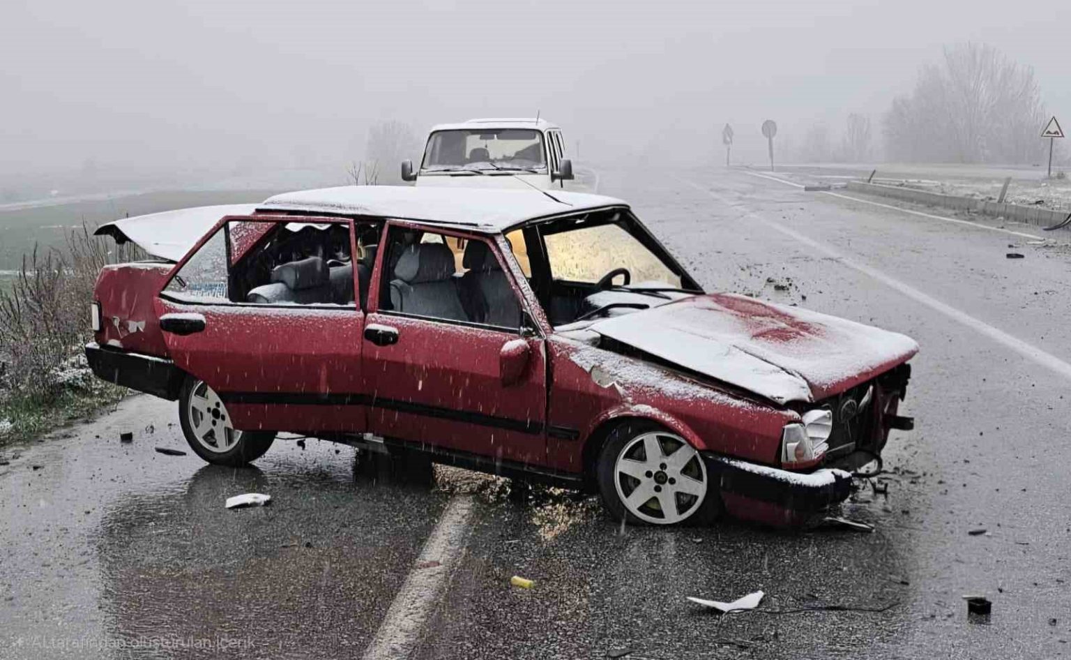 Kaza, Çorum-Alaca karayolunda meydana geldi. Edinilen bilgilere göre, Çorum istikametinde seyir halinde olan Samet P. idaresindeki Samet P. idaresindeki 58 ADA 282 plakalı Fiat-Tofaş marka otomobil, sürücüsünün kar yağışı ve buzlanma sebebiyle direksiyon hakimiyetini kaybetmesi neticesinde yön tabelasına çarptı. Kazada sürücü yaralandı.