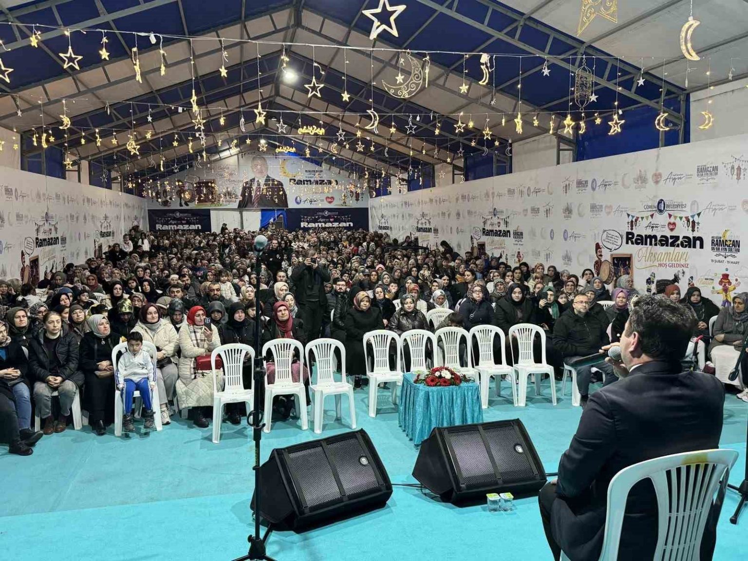 Konser sırasında konuşma yapan Belediye Başkanı Dr. Halil İbrahim Aşgın, konsere yoğun ilgi gösteren vatandaşlara teşekkür etti. Başkan Aşgın, Ramazan akşamına ilahileriyle renk katan sanatçılara da teşekkür ederek kendilerine çiçek takdim etti.