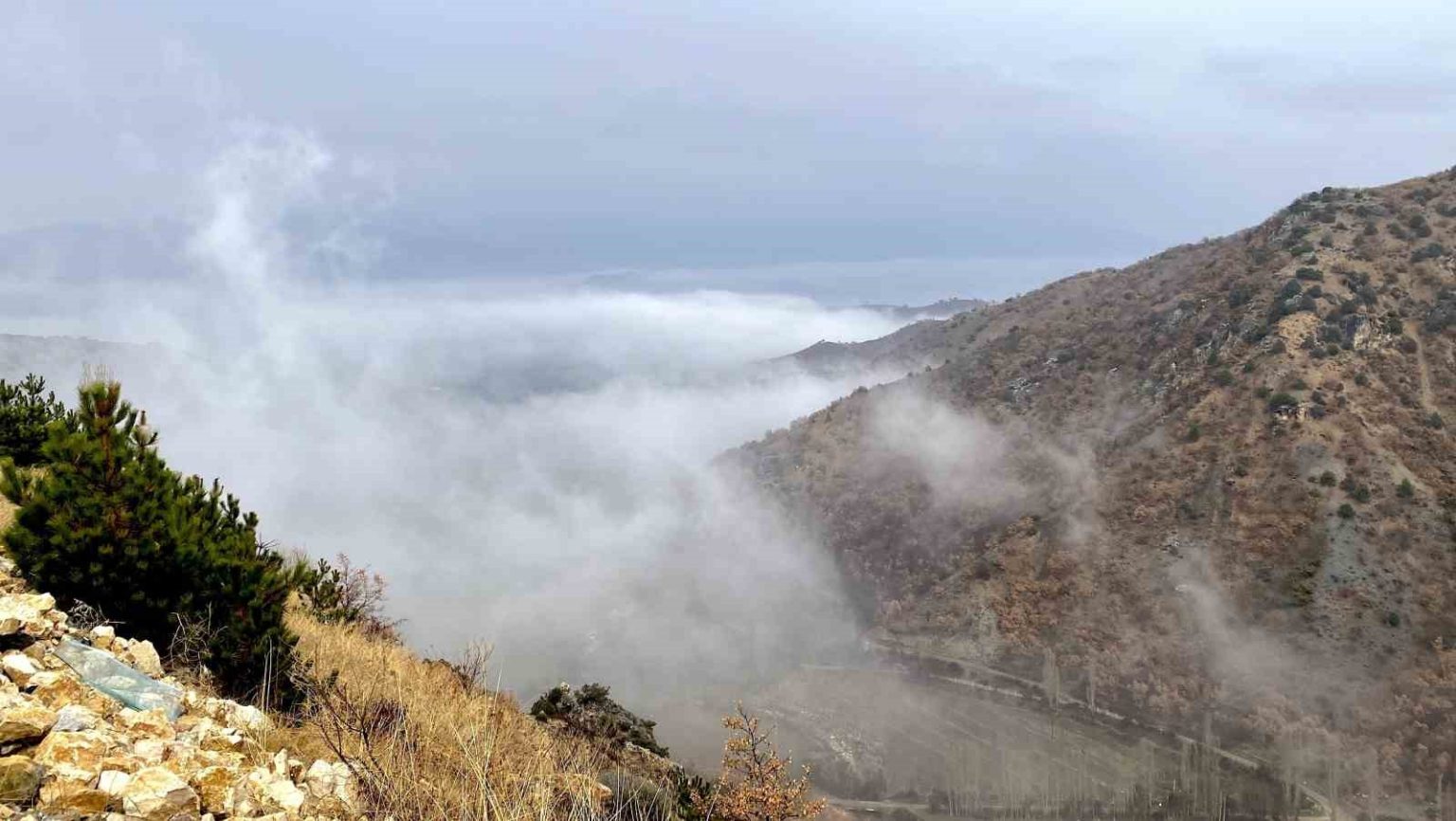 Çorum’un Laçin ilçesi Kırkdilim mevkiinde yoğun sis etkili oldu.