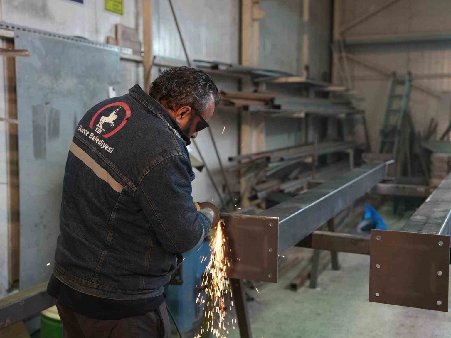 Düzce Belediyesi’nin öz kaynaklarını kullanarak şehre katma değer sağlamak için önemli bir görev üstlenen Destek Hizmetleri Müdürlüğü, çözü odaklı tamamlayıcı görevini 2025 yılının tamamında da sürdürdü. 1 Ocak – 312 Aralık 2025 tarihleri aralığını kapsayan süreç içerisinde belediye hizmet alanları içerisinde bulunan 63 mahalle genelinde kullanılmak üzere çeşitli mobilya imalatlarını yapan müdürlük, masa, dolap, etejer, konsoldan oluşan 90 takım mobilya imalatı, 37 adet kamelya imalatı ve montajı, 70 adet piknik masası imalat ve montajı yapılmasını sağladı.