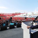 Terörsüz Türkiye için her adımı ölçüp biçip olan göre hareket ettiklerini ve Türkiye’nin ehil kadrolar tarafından yönetildiğini vurgulayan Erdoğan; “İkinci Dünya Savaşı sonrasında kurulan küresel nizam kökten çatırdıyor. Yıllardır konforlu bir coğrafyanın tadını çıkaran ülkeler, ilk defa bizim yıllardır uğraştığımız meselenin çok küçük bir kısmıyla burun buruna gelmeye başladılar. Yaptığımız eleştirilen artık Batı dünyasında da karşılık bulduğunu görüyoruz. Bugün Batılı liderler sistemin sorunlarından bahsediyor. Bizi acımasızca eleştirenler bugün bize hak veriyorlar. Aynı durum Suriye için de geçerlidir. Oradaki mazlumlara sahip çıktığımız için ‘Türkiye orta doğu bataklığına saplanıyor, yalnızlaşıyor’ dediler. Suriye’de zalim rejim devrildi. Türkiye’nin çok yakın dostu bir hükümet geldi. Ülkemizin de güçlü desteğiyle Suriye hızla toparlanıyor. 13,5 yıllık çatışmaların ardından güvenlik ve istikrar yeniden sağlanıyor. Terör örgütleri Suriye rejimi tarafından yavaş yavaş çıkartılıyor. Türkmen kardeşlerimiz aynı şekilde yeni yönetimde çok önemli görevler üstleniyor. DEAŞ denilen terör örgütü ile mücadele eskisinden daha güçlü, kararlı hale geliyor. Bölgemizde her türlü terörün kökü kurutuluyor. Ülkemiz için endişe kaynağı olan sorunlar birer birer çözüme kavuşuyor. Halep’te, Hama’da, Afrin’de, İdlib’te milyonlar cıvıl cıvıl Türkçe konuşuyor. Türkiye’yi konuşuyor. Bize hayır dualar ediyor. İnşallah çok daha iyi olacak. Suriye’nin kuzeyindeki tehdit ortadan kalkınca, Suriye bölgede refah alanına dönüştükçe, hepimiz istifade edeceğiz. Bunun için önce 86 milyon olarak birbirimize kenetleneceğiz. Hep beraber Türkiye olacağız. Unutmayın İslam kardeşliği ortak paydasında bölgedeki halklarla bir araya geleceğiz. Sabırlı, soğukkanlı, oyuna gelmeyecek, fitne ateşine karşı uyanık olacağız. Kutuplaşma hem bize hem bölgemize acıdan başka bir şey getirmez. Sadece gözyaşı getirir. Hükümet olarak, AK Parti ve Cumhur İttifakı olarak ne yaptığımızı çok iyi biliyoruz. Terörsüz Türkiye sürecinde attığımız her adımı ölçüp biçip ondan sonra harekete geçiyoruz. Çok zorlu süreçleri çok başarılı bir şekilde yönettik. Şundan milletimiz emin olsun. Türkiye ehil kadroların elindedir. Rabbim bizi hizmet yolundan ayırmasın” dedi.
