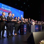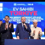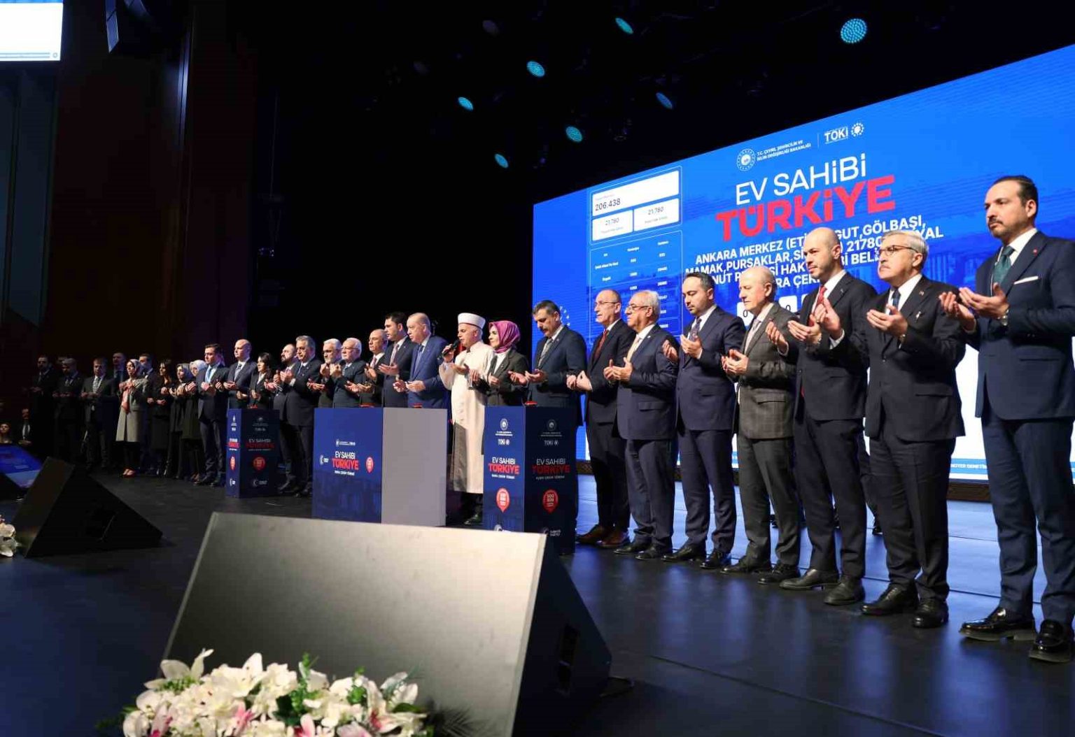 Cumhurbaşkanı Erdoğan’ın konuşmasının ardından Çevre, Şehircilik ve İklim Değişikliği Bakanı Murat Kurum, Aile ve Sosyal Hizmetler Bakanı Mahinur Özdemir Göktaş, İçişleri Bakanı Mustafa Çiftçi, AK Parti Genel Başkan Yardımcıları da Cumhurbaşkanı Erdoğan ile kura çekimi için sahneye geldi. Diyanet İşleri Başkan Yardımcısı Hüseyin Hazırlar’ın yaptığı dua sonrası Erdoğan, butona basarak kurayı başlattı.