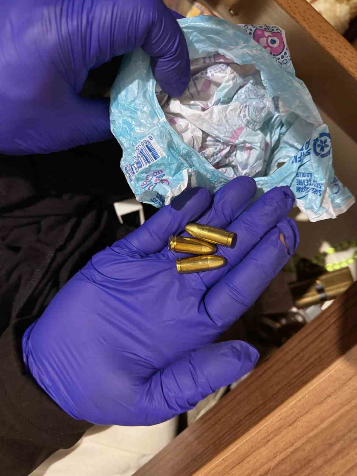 3 adet tabanca, 2 adet yivsiz av tüfeği, 283 adet tabancalar ait fişek, 3 adet Ak-47 fişeği, 16 adet bıçak ve muşta, çok sayıda dijital materyal ve 200 bin TL bedelli senet ele geçirildi.