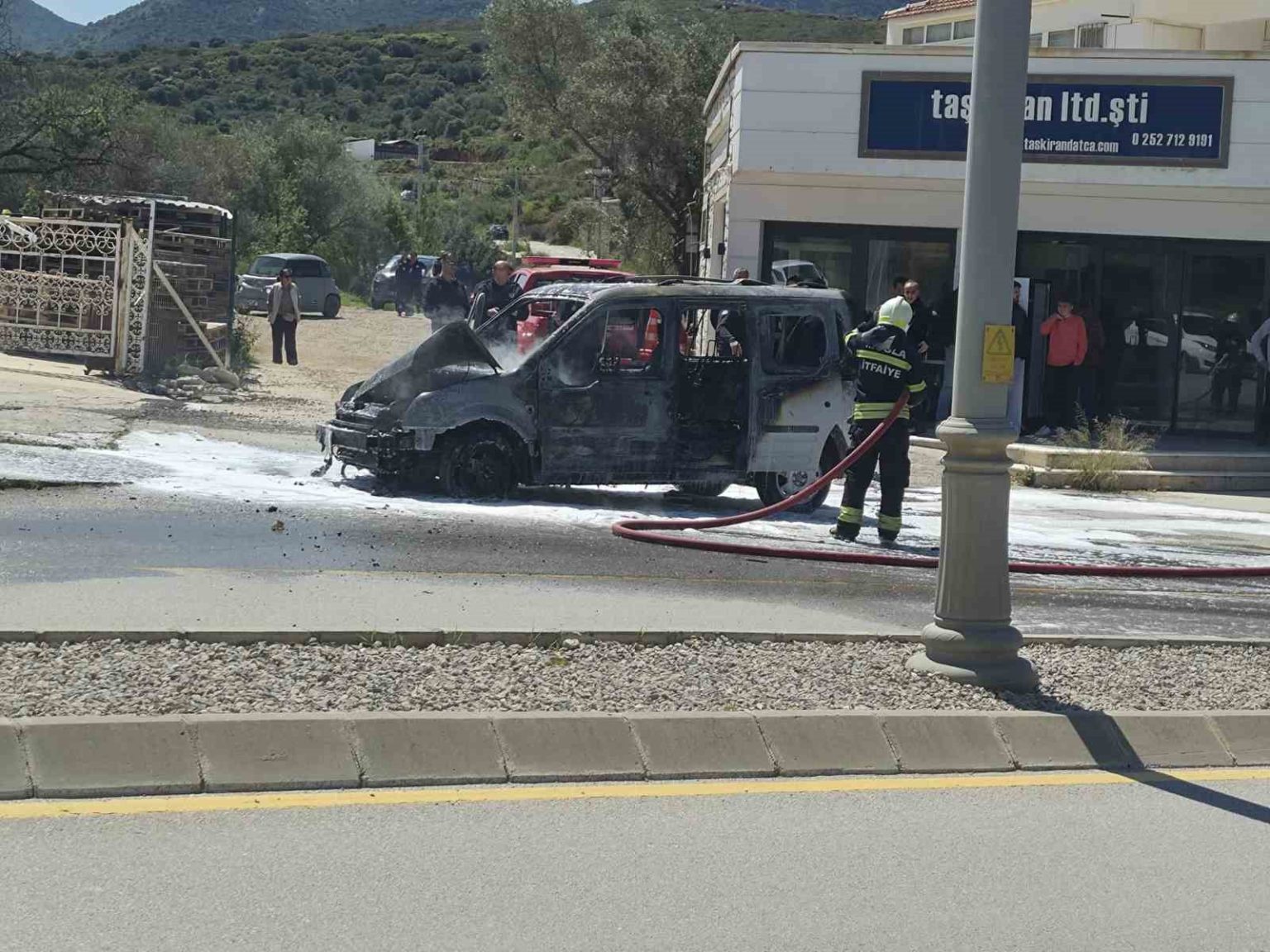 Muğla’ın Datça ilçesinde alevlere teslim olan ticari araç küle döndü.