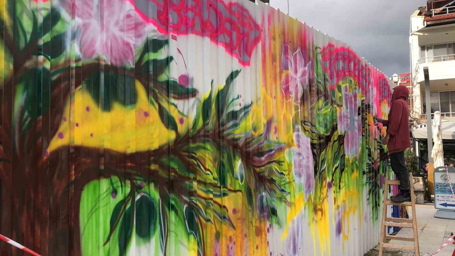 Muğla’nın Datça ilçesinde yapımı devam eden İsmet Tekinalp İlkokulu’nun dış duvarları, yarın başlayacak olan Badem Çiçeği Festivali öncesinde badem çiçeği motifleriyle süslendi. Festivalin ruhuna uygun olarak hazırlanan çalışma ilgi gördü.