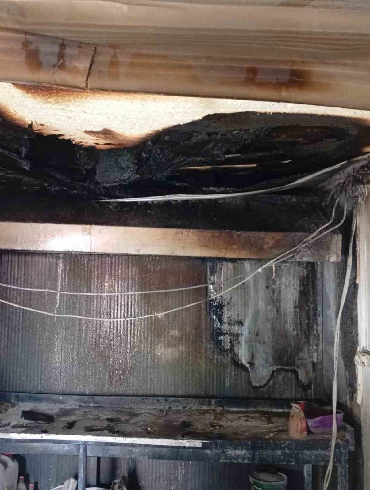 Hatay’da alevlere teslim olarak yanan iş yeri kullanılmaz hale geldi.