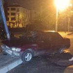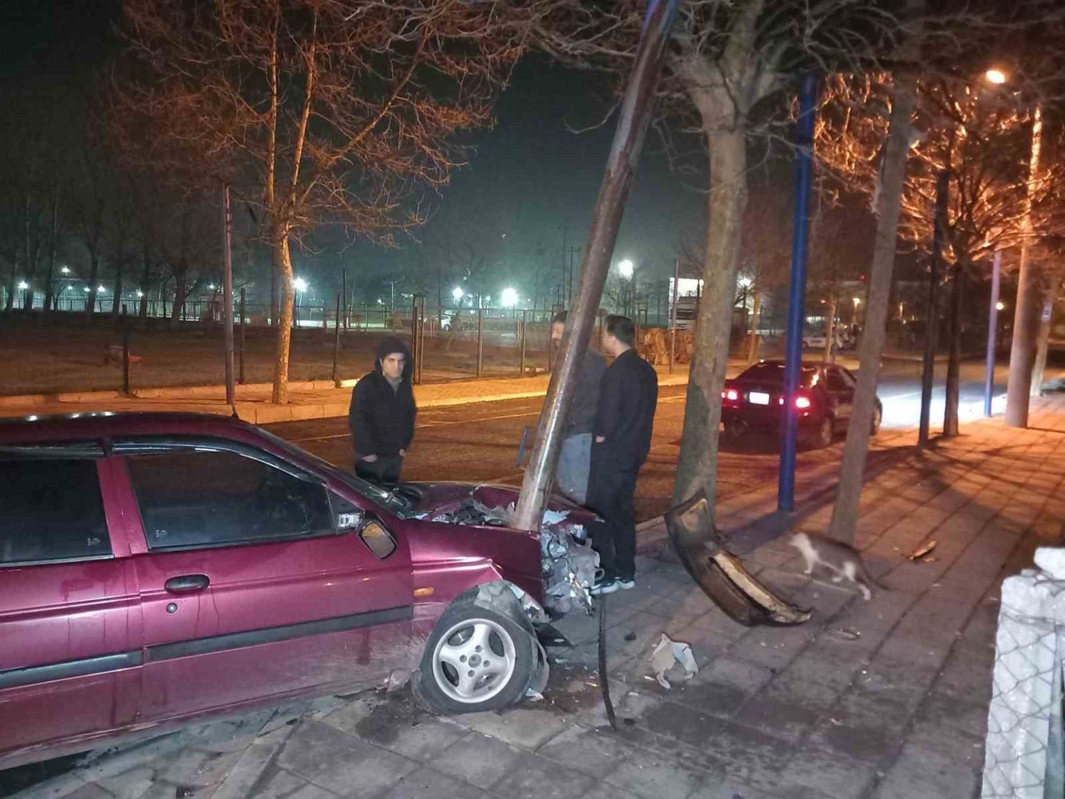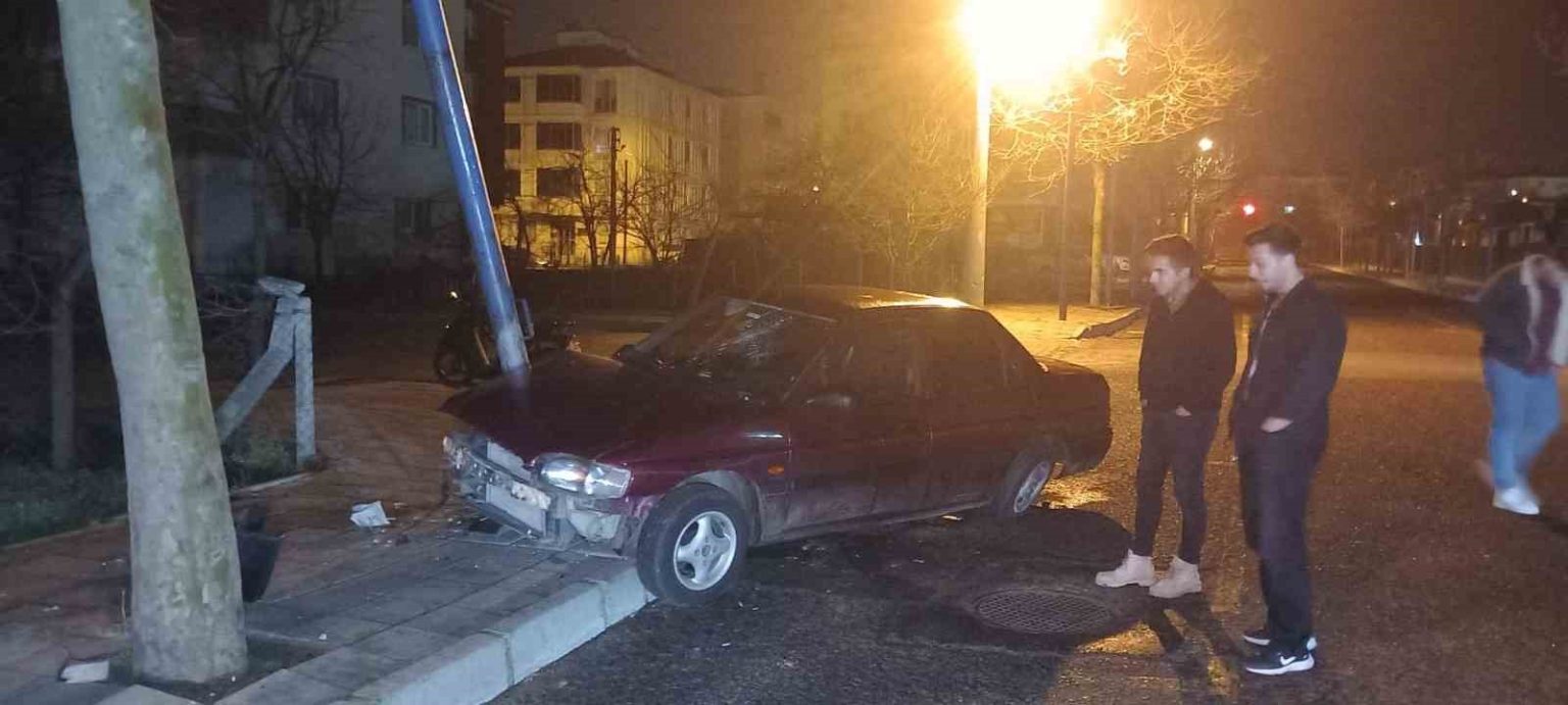 Tekirdağ Çorlu’da gece yarısı bir otomobil kaldırım üzerindeki demir direğe çarptı. Otomobilin hurdaya döndüğü kazada sürücü olay yerinden firar etti.