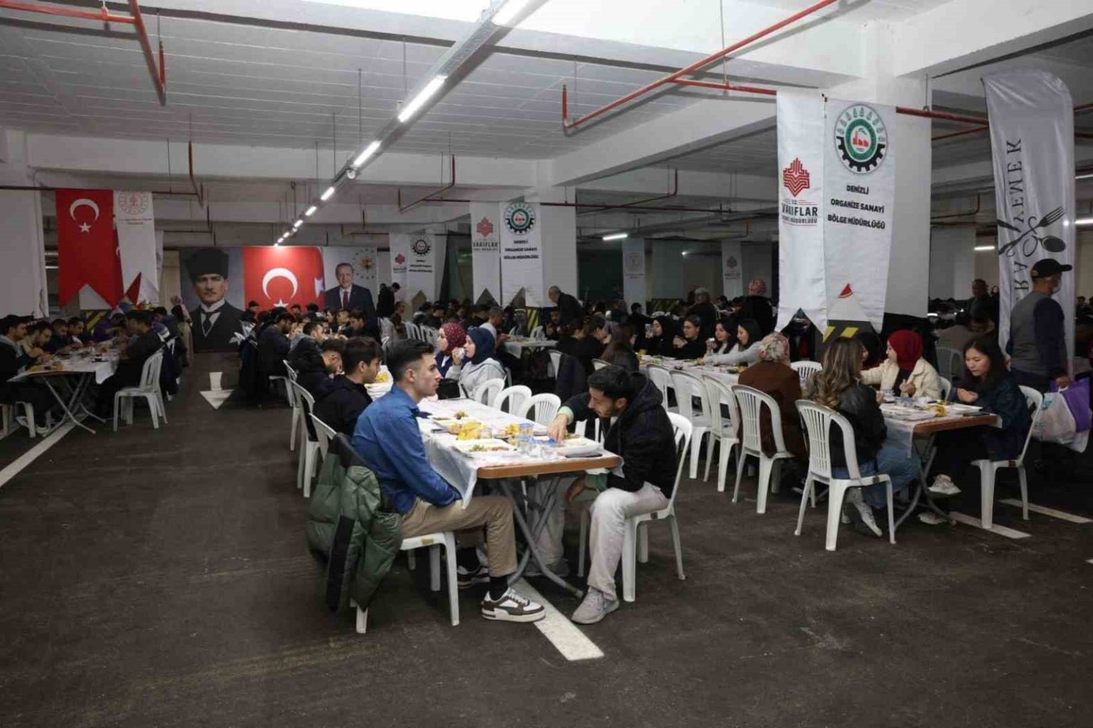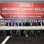 Denizli Organize Sanayi Bölgesi Müdürlüğü’nün organizasyonunda Bölge firmalarının destekleriyle geleneksel olarak düzenlenen iftar programı her gün 3 bin kişiyi aynı sofrada buluştururken, Ramazan Ayı boyunca toplam 100 bin kişiye ulaşılması hedefleniyor. Müftü Ahmet Hulusi Efendi Cami ve Külliyesi’nde gerçekleştirilen iftar programına; Denizli OSB Yönetim Kurulu Başkanımız Derya Baltalı, Pamukkale Üniversitesi Rektörü Prof. Dr. Mahmud Güngör, iş insanları, Pamukkale Üniversitesi öğrencileri ve vatandaşlar katıldı.
