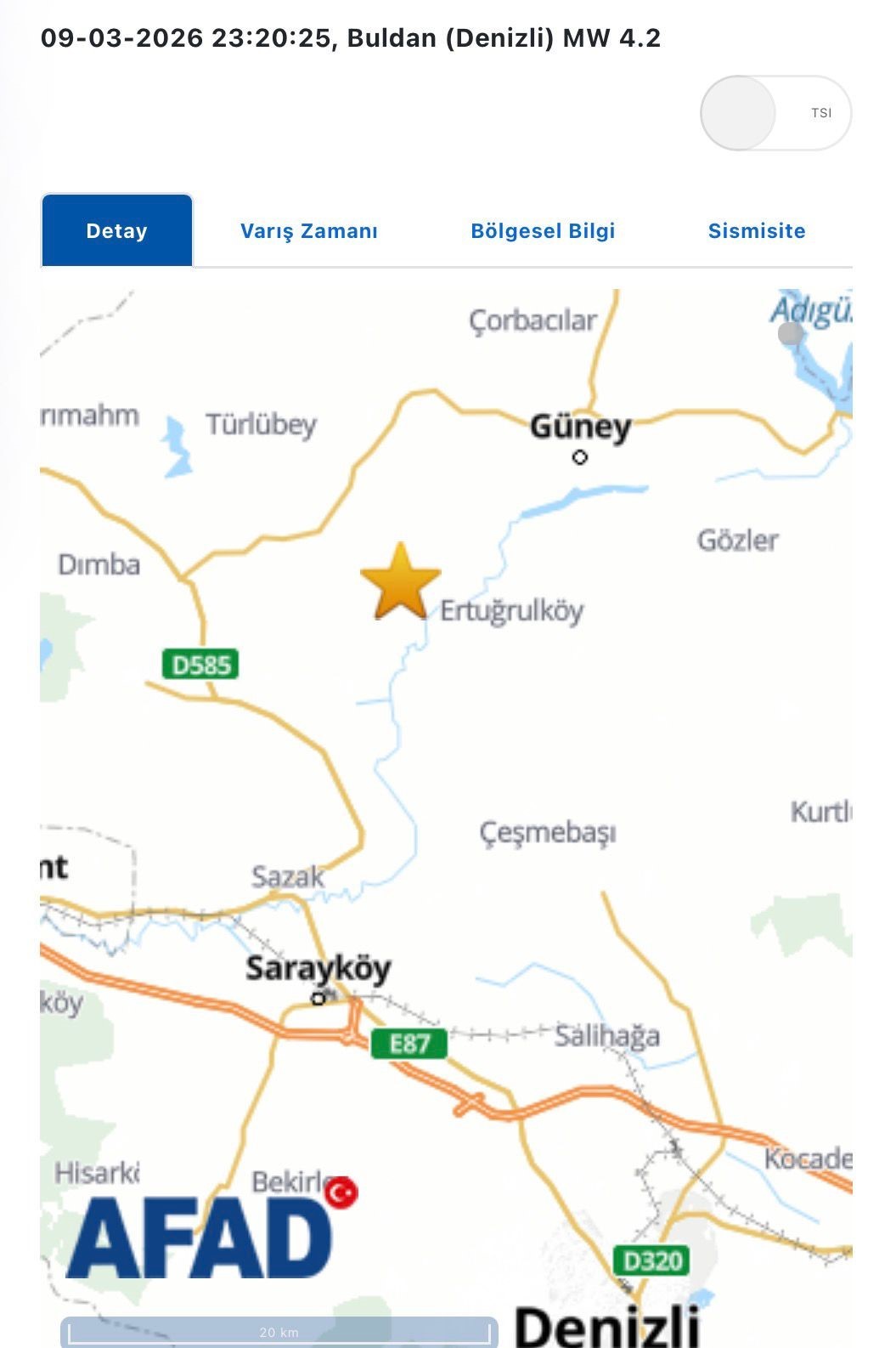 Denizli’de gün boyu yaşanan 100’ü aşkın artçı depremler devam ediyor. Buldan merkezli 4.2 büyüklüğündeki deprem, saat 23.20’de meydana geldi.