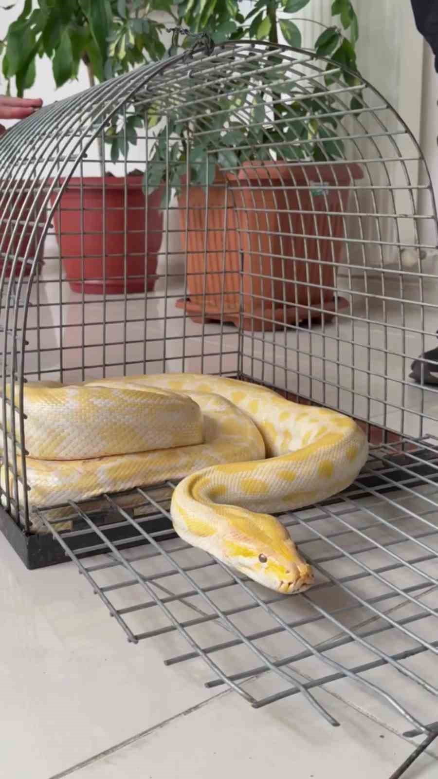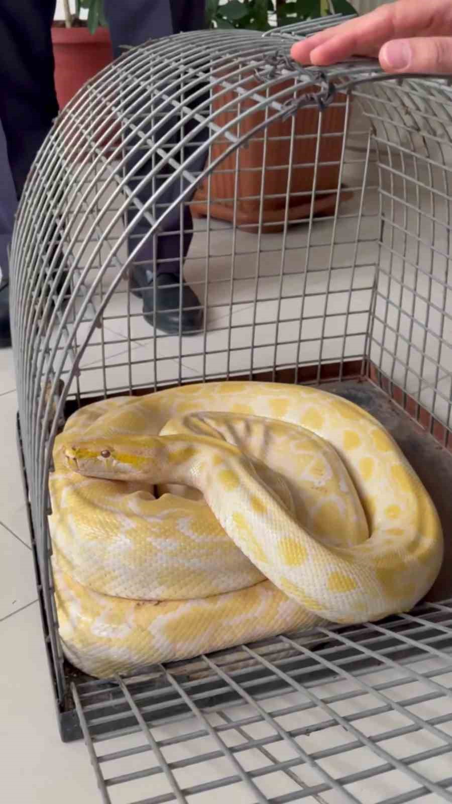 Denizli’de bir alışveriş merkezinde düzenlenen gösteride kullanılan Albino Burma Pitonu, yapılan denetimlerde gerekli izin belgelerinin bulunmadığının tespit edilmesi üzerine ekipler tarafından el konularak koruma altına alındı.