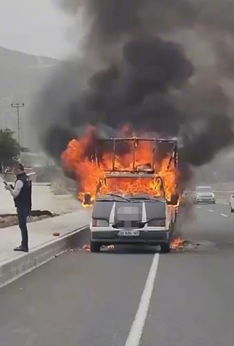 Yangın, Pamukkale ilçesi Cankurtaran Mahallesi’nde meydana geldi. Edinilen bilgilere göre, Denizli-Acıpayam kara yolunda seyir halindeki henüz plakası öğrenilemeyen ticari araçtan dumanlar yükselmeye başladı. Durumu fark eden sürücü, aracı yol kenarına çekerek kendini dışarı attı. Kısa sürede araç alevlere teslim olurken, çevredeki vatandaşların ihbarı üzerine bölgeye itfaiye ve polis ekipleri sevk edildi. İtfaiye ekiplerinin çalışmaları sonucu yangın kontrol altına alınarak söndürüldü. Ticari aracın kullanılamaz hale geldiği yangınla ilgili inceleme başlatıldı.