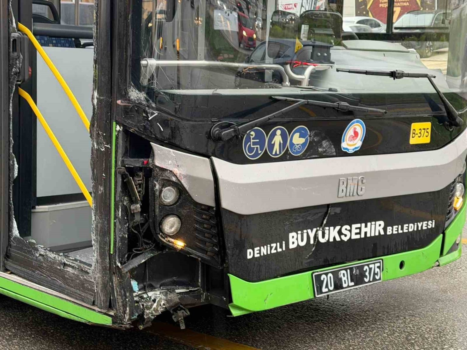 Denizli’de belediye otobüsü, minibüs ve otomobilin çarpıştığı kazada 4 kişi yaralandı.