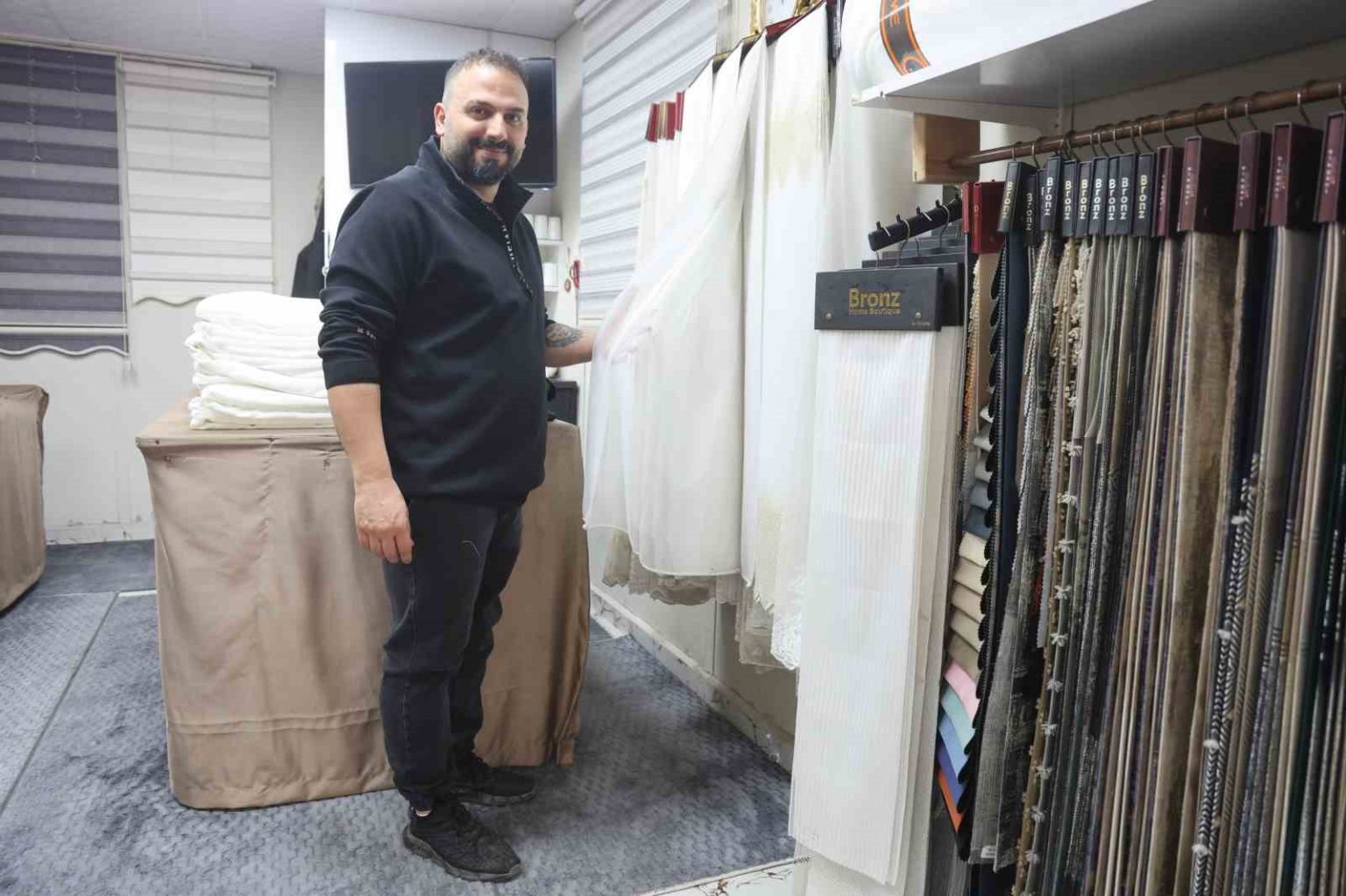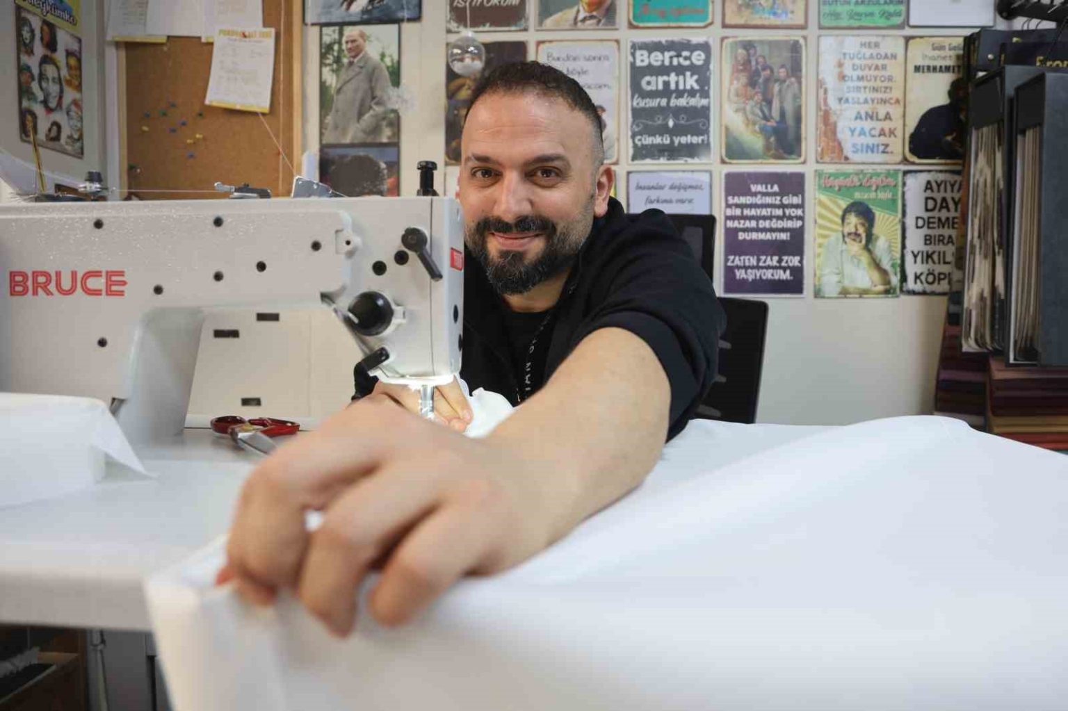 25 yıllık perdecilik mesleğine asrın felaketinin ardından protez bacağıyla devam ettiğini ifade eden Şabanoğlu, “Yeri geldiğinde çıkıp perde takabiliyorum, o rahatlığı kendime sağladım. Ben 2001 yılından beri perdecilik işinin içerisindeyim. Perde imalatı ve satışını yapıyorum. 2015 yılımda işyerimi açmıştım. Herkes beni perdeci Ali Zeki diye tanır. İşimi severek yapıyorum. Perdecilik işinde iyi bir çevrem oluştu. İş yerim depremden ağır hasar aldığı için yıkıldı. Şu an prefabrik çarşıda, Hatay Valiliği tarafından bir dükkan tahsis edildi. Burada mesleğimi icra ediyorum. Depremi asla unutamam ama insan alışıyor. Alışmaya çalışıyorum ama kesinlikle unutamıyoruz. O gün unutulacak bir gün değil. O günü andıracak şekilde değil ama depremler oluyor. Olursa bir daha ne yapacağız gibi şeyler düşünüyoruz. Evliyim ve 5 yaşında bir oğlum var. Oğlum hayata tutunma sebebim diyebilirim. Oğlum bana en güzel ilaç geldi. Eşim ve ailem de desteklerini hiçbir zaman esirgemediler. Çocuğumla her yere gidebiliyorum ve kurslara götürebiliyorum” ifadelerini kullandı.