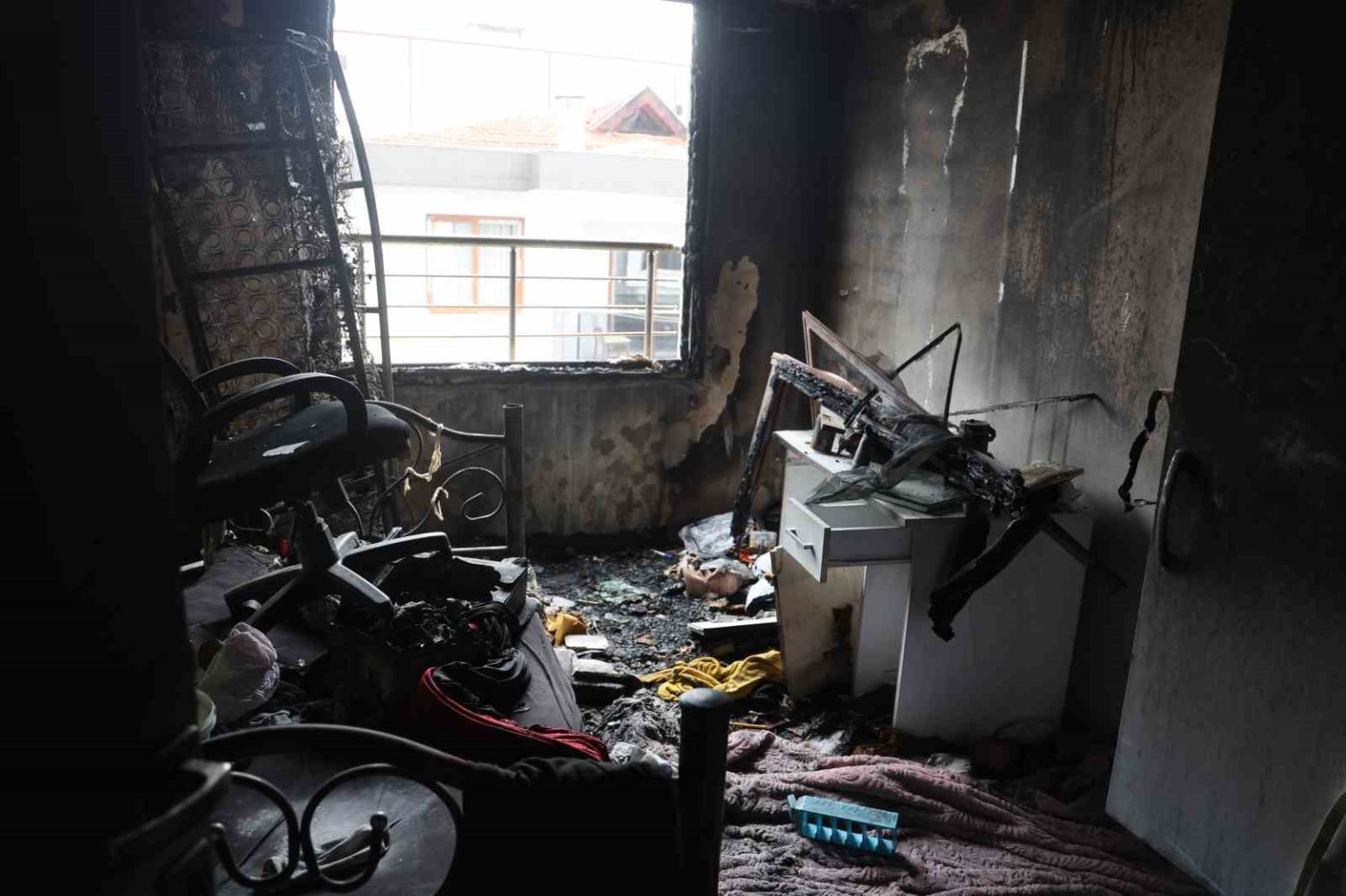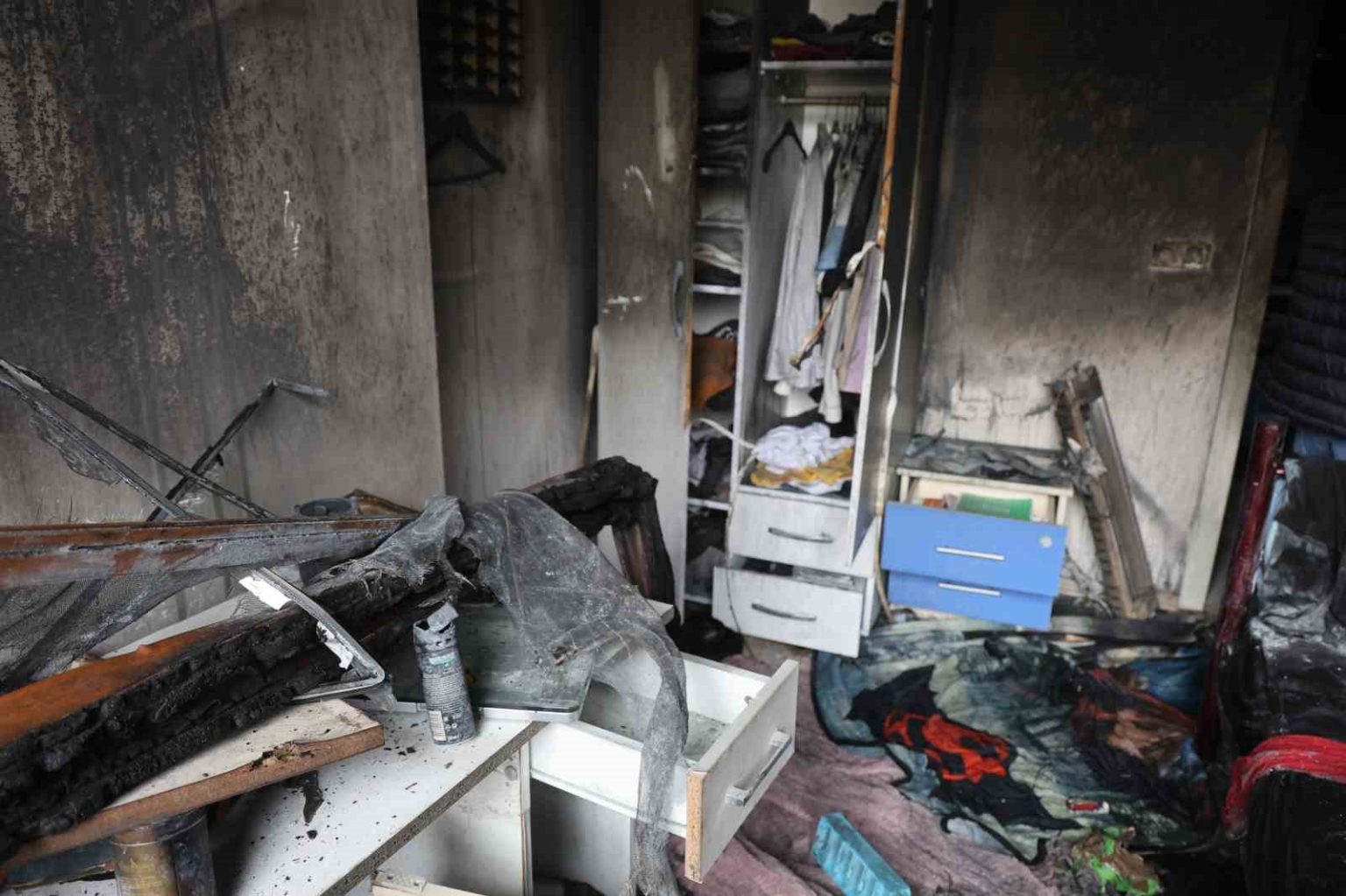Evlatlarıyla evde oturdukları esnada alevlerin içinde kaldıklarını ifade eden Özlem Berrak, “Çocuklar birlikte yangın esnasında evdeydik. Oğlum yangın var anne dedi. Geldiğimizde kanepeler ve perdeler yanıyordu. Birden alevler yükselince müdahale edemedik. İtfaiye ekiplerine haber ettik. Ekipler de gelip müdahale ettiler. Yangını fark etmedik. Küçük oğlum koku var, yangın çıktı galiba diye söyledi. Geldiğimizde ise alevlerle karşılaştık. Apartman girişine inip yardım istedim, yardım edin diye bağırdım. Komşular da itfaiye ekiplerine haber verdiler. Depremde bu mahallede oturuyorduk. Depremde evimiz yan yattı ve sonrasında yıkıldı. Burada 1 yıldır yaşıyorum. Bu odada büyük oğlum kalıyor. Oğlum içeride değil de mutfaktaydı. Odasına geri döndüğünde odam yanıyor diye bağırmıştı. Çocuğumun odası komple yandı ve biraz da benim odama sıçradı. Evimizin eski haline dönmesini çok istiyorum” ifadelerini kullandı.