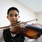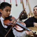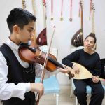 Deprem sonrası kemanla tanıştığını ifade eden Çınar Kaplan, “12 yaşındayım, altıncı sınıfa gidiyorum ve keman çalıyorum. Benim keman çalma serüvenim birkaç yıl önce depremle başladı. Elazığ depremi olduğunda bizim ev hasar aldı ve konteynere taşınmak zorunda kaldık. Bir süre sonra pandemi geldi, Covid-19 derken sokağa çıkma yasakları başladı ve sürekli evdeydik. Çok sıkılıyorduk. O dönemde Onur Şahin çocukları kötü alışkanlıklardan uzak tutmak için enstrüman dersleri veren kurs açtı. Bunu duyunca çok sevindik ve hemen başvuru yaptık. Sağ olsun kabul etti. Aslında annem beni bağlamaya yazdıracaktı ama ben keman istedim. Annem kemanın zor olduğunu söyledi ama ben denemek istedim. İki üç ay kursa gittim. Orada hocam bana öğretti. Üç aylık kurs bitince ve devam edecek imkanımız olmadığı için okullar da açılınca kursa gidemedim. Okuldan geldikten sonra evde internetten ve telefondan videolar izleyerek kendi kendime çalıştım ve kemanı devam ettirmeye çalıştım” şeklinde konuştu.