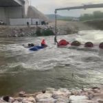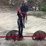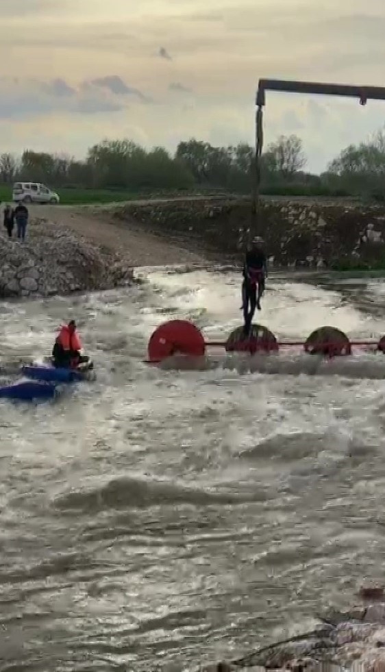 Dereyi traktörle geçmek isterken faciadan dönüldü: 10 işçi vinçle kurtarıldı