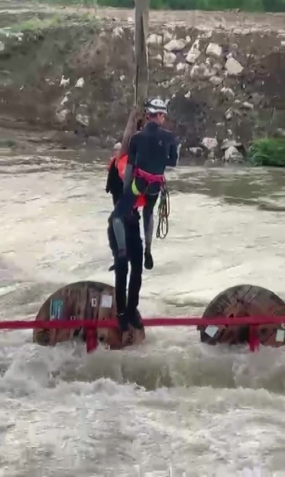 Dakikalar süren müdahalenin ardından olay yerine getirilen vinç yardımıyla işçiler tek tek bulundukları noktadan çıkarıldı. Kurtarma anları ise cep telefonu kameralarına yansıdı. Görüntülerde ekiplerin koordineli çalışması ve işçilerin vinç yardımıyla güvenli alana alındığı anlar yer aldı.