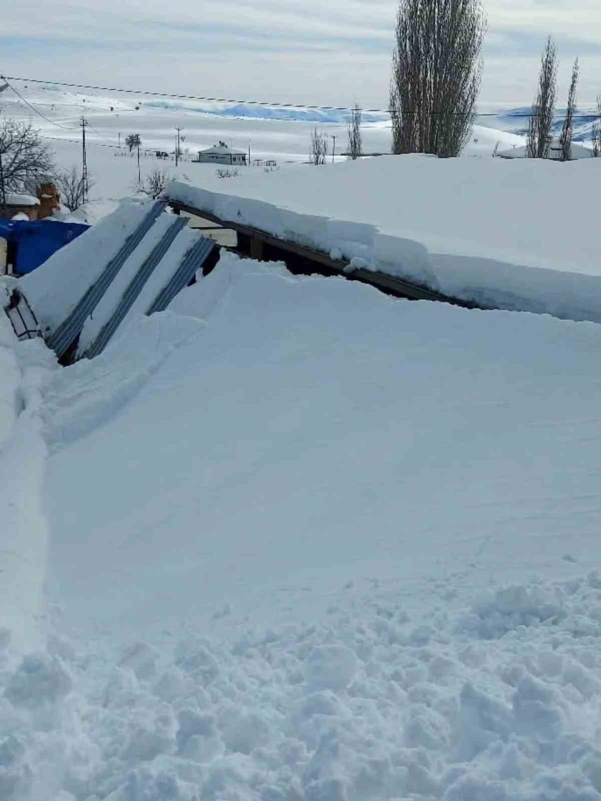 Kayseri’de etkili olan kar yağışı sonrasında Develi ve Tomarza ilçelerinde kar kalınlığı 50 santimi geçti. Develi’de karın ağırlığını taşıyamayan bir ahırın çatısı çöktü.