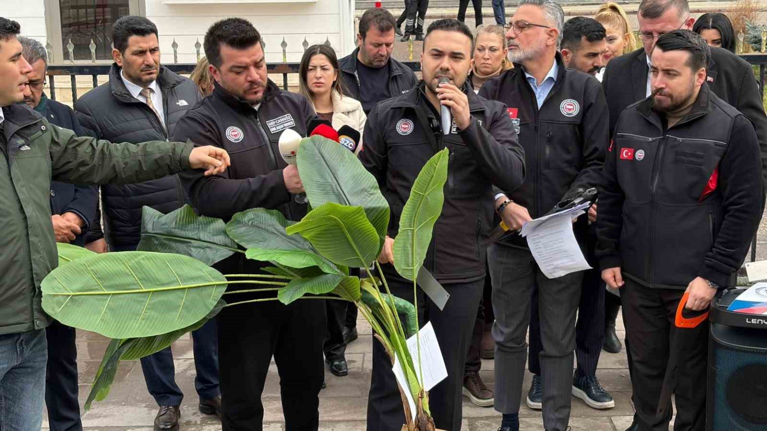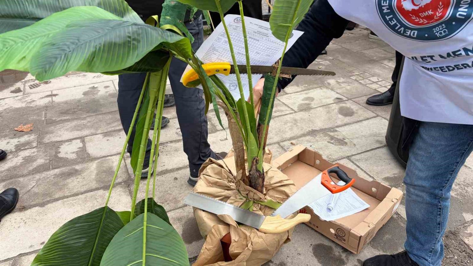 Basın açıklaması, sendika üyelerinin Orman Genel Müdürlüğü önünde yapay ağacı kesmesi ve hatıra fotoğrafı çektirmesiyle son buldu.