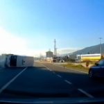Kaza, İstanbul-Bursa yolu Gemlik – Orhangazi arasında meydana geldi. Edinilen bilgiye göre, İstanbul ikametine ilerleyen minibüs sürücüsü, direksiyon hakimiyetini kaybetmesi sonucu devrildi. Orta refüje çarpan minibüs, yan yattıktan sonra karşı şeritten gelen araçların önünde durdu. Trafik akışının seyrek olması, büyük bir kazanın önüne geçerken, yaşanan anlar ise saniye saniye araç kamerasına yansıdı.