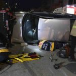 Devrilen otomobilin altında kalan sürücü itfaiye ekiplerince çıkarıldı