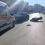 Devrilerek sürüklenen motosikletli otomobile çarptı
