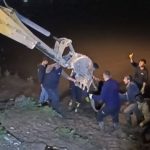 Dicle Nehri’ne düşen ineği itfaiye iş makinesiyle kurtardı