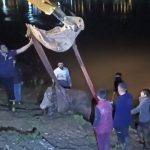Şırnak’ın Cizre ilçesinde otlarken Dicle Nehri’ne düşen inek, saatler süren çalışmayla kurtarıldı.