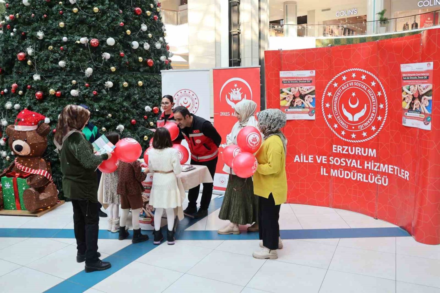 Erzurum’da Aile ve Sosyal Hizmetler İl Müdürlüğünce, “Dijital Dünyada Çocuk Hakları” temasıyla imza kampanyası kapsamında kamuoyu farkındalık ve bilgilendirme stantları açıldı. Vatandaşların yoğun ilgi gösterdiği stantta, dijital ortamda çocukların haklarının korunmasına yönelik farkındalık oluşturuldu.