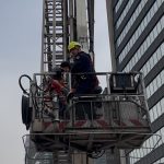 Dış cephede cam silerken asansör sistemi arıza yapınca mahsur kaldılar: İtfaiyenin müdahalesiyle kurtarıldılar