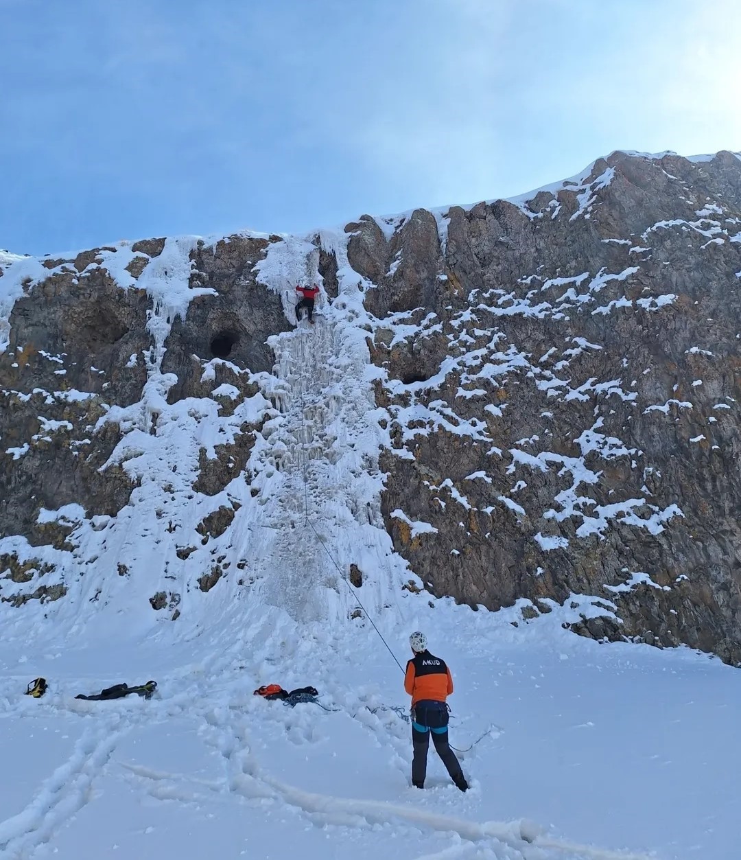 Ağrı’nın Diyadin ilçesinde bulunan Diyadin Kanyonu’nda kış mevsiminde oluşan buz şelalesinde doğa sporcuları tarafından buz tırmanışı gerçekleştirildi.